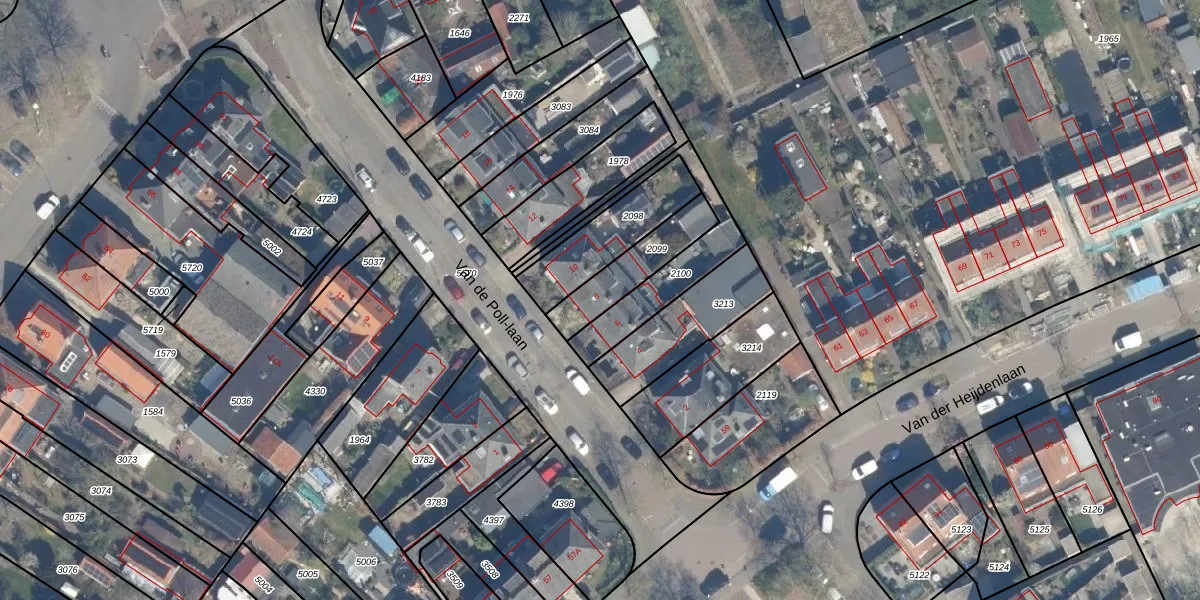 Gebruik de zoekbalk of klik op een perceel voor informatie over de adressen binnen dit perceel.