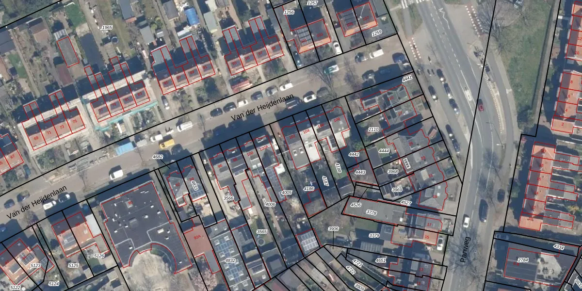 Van der Heijdenlaan 102 is gelegen op kadastraal perceel ZEI00M4186. Deze kadastrale aanduiding is uniek en wordt gebruikt door het Kadaster om eigendomsrechten en andere zakelijke rechten vast te leggen. Het perceel maakt onderdeel uit van de kadastrale gemeente Zeist.