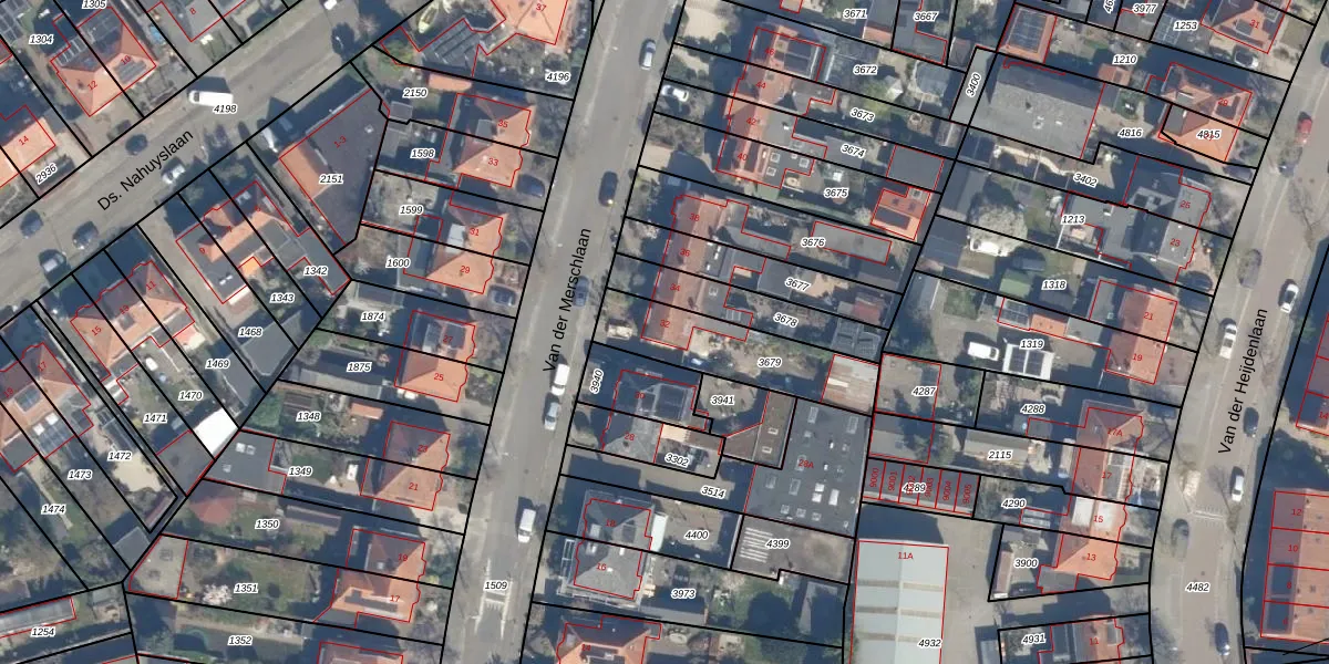 Het perceel waarop Van der Merschlaan 32 staat heeft een oppervlakte van 350 m². Dit is een groot perceel. De perceeloppervlakte wordt geregistreerd door het Kadaster. Gedetailleerde informatie over de maten van dit perceel kunt u vinden in het rapport Kadastrale kaart met maatvoering van Van der Merschlaan 32.