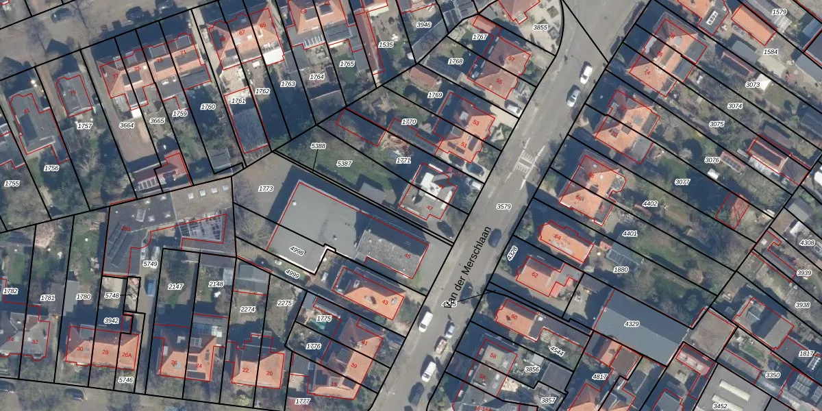 Van der Merschlaan 47 is gelegen op kadastraal perceel ZEI00M5387. Deze kadastrale aanduiding is uniek en wordt gebruikt door het Kadaster om eigendomsrechten en andere zakelijke rechten vast te leggen. Het perceel maakt onderdeel uit van de kadastrale gemeente Zeist.