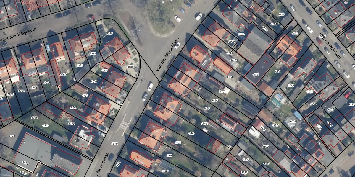 Het perceel waarop Van der Merschlaan 74 staat heeft een oppervlakte van 409 m². Dit is een groot perceel. De perceeloppervlakte wordt geregistreerd door het Kadaster. Gedetailleerde informatie over de maten van dit perceel kunt u vinden in het rapport Kadastrale kaart met maatvoering van Van der Merschlaan 74.