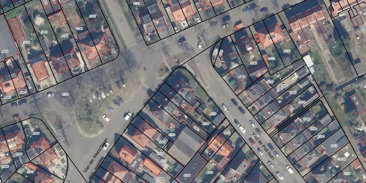 Het perceel waarop Van der Merschlaan 92 staat heeft een oppervlakte van 379 m². Dit is een groot perceel. De perceeloppervlakte wordt geregistreerd door het Kadaster. Gedetailleerde informatie over de maten van dit perceel kunt u vinden in het rapport Kadastrale kaart met maatvoering van Van der Merschlaan 92.