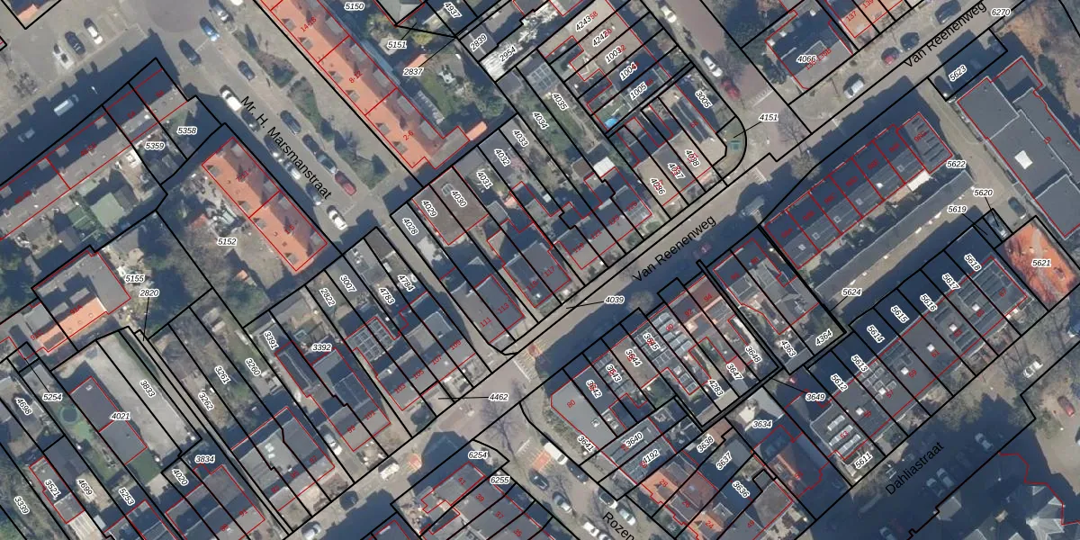 Het perceel waarop Van Reenenweg 117 staat heeft een oppervlakte van 189 m². Dit is een middelgroot perceel. De perceeloppervlakte wordt geregistreerd door het Kadaster. Gedetailleerde informatie over de maten van dit perceel kunt u vinden in het rapport Kadastrale kaart met maatvoering van Van Reenenweg 117.