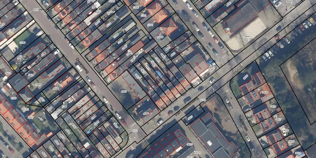 Gebruik de zoekbalk of klik op een perceel voor informatie over de adressen binnen dit perceel.