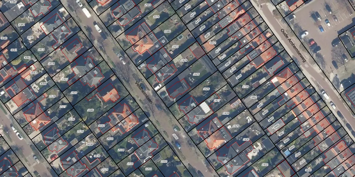 Het perceel waarop Veldheimlaan 21 staat heeft een oppervlakte van 408 m². Dit is een groot perceel. De perceeloppervlakte wordt geregistreerd door het Kadaster. Gedetailleerde informatie over de maten van dit perceel kunt u vinden in het rapport Kadastrale kaart met maatvoering van Veldheimlaan 21.