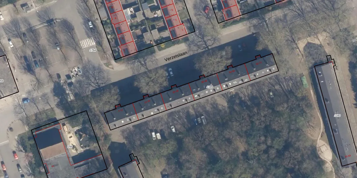Het perceel waarop Verzetslaan 30 staat heeft een oppervlakte van 1065 m². Dit is een zeer groot perceel. De perceeloppervlakte wordt geregistreerd door het Kadaster. Gedetailleerde informatie over de maten van dit perceel kunt u vinden in het rapport Kadastrale kaart met maatvoering van Verzetslaan 30.