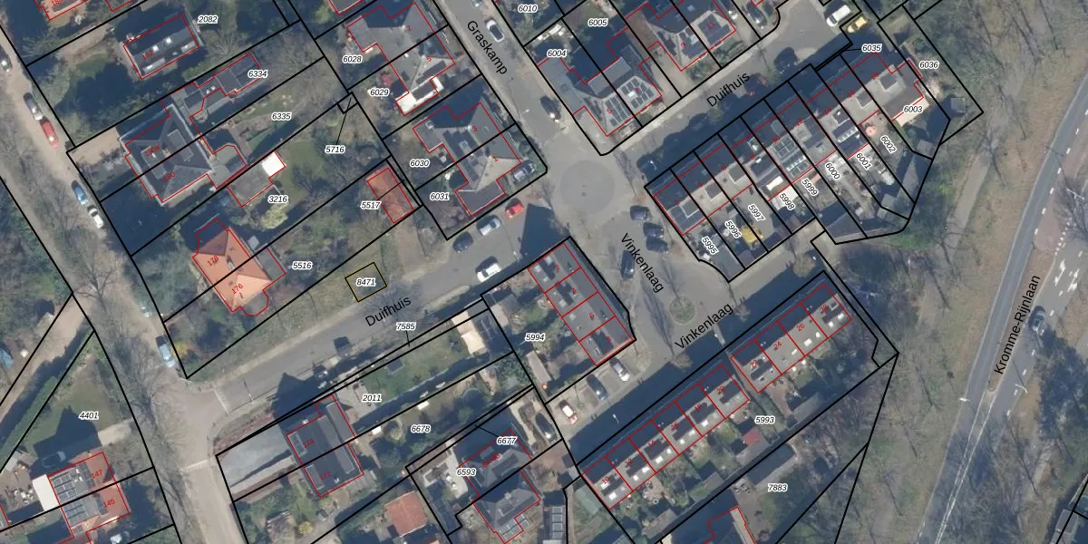 Het perceel waarop Vinkenlaag 2 staat heeft een oppervlakte van 470 m². Dit is een groot perceel. De perceeloppervlakte wordt geregistreerd door het Kadaster. Gedetailleerde informatie over de maten van dit perceel kunt u vinden in het rapport Kadastrale kaart met maatvoering van Vinkenlaag 2.