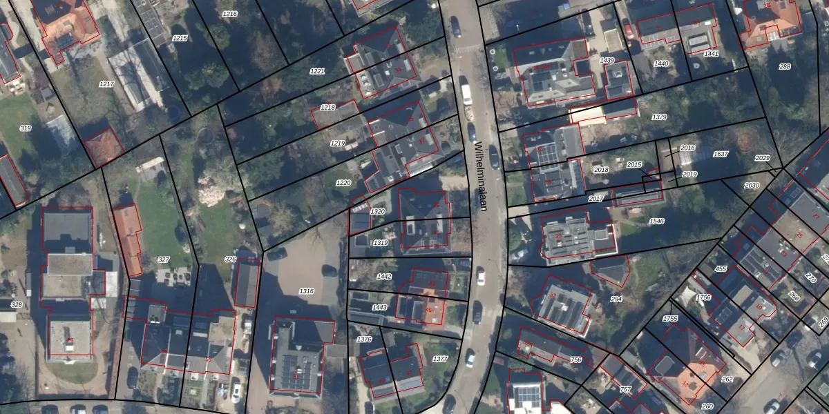 Het perceel waarop Wilhelminalaan 39 staat heeft een oppervlakte van 310 m². Dit is een groot perceel. De perceeloppervlakte wordt geregistreerd door het Kadaster. Gedetailleerde informatie over de maten van dit perceel kunt u vinden in het rapport Kadastrale kaart met maatvoering van Wilhelminalaan 39.