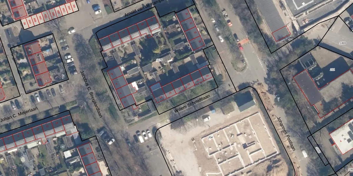 Het perceel waarop Willem Schmidtlaan 27 staat heeft een oppervlakte van 2990 m². Dit is een zeer groot perceel. De perceeloppervlakte wordt geregistreerd door het Kadaster. Gedetailleerde informatie over de maten van dit perceel kunt u vinden in het rapport Kadastrale kaart met maatvoering van Willem Schmidtlaan 27.