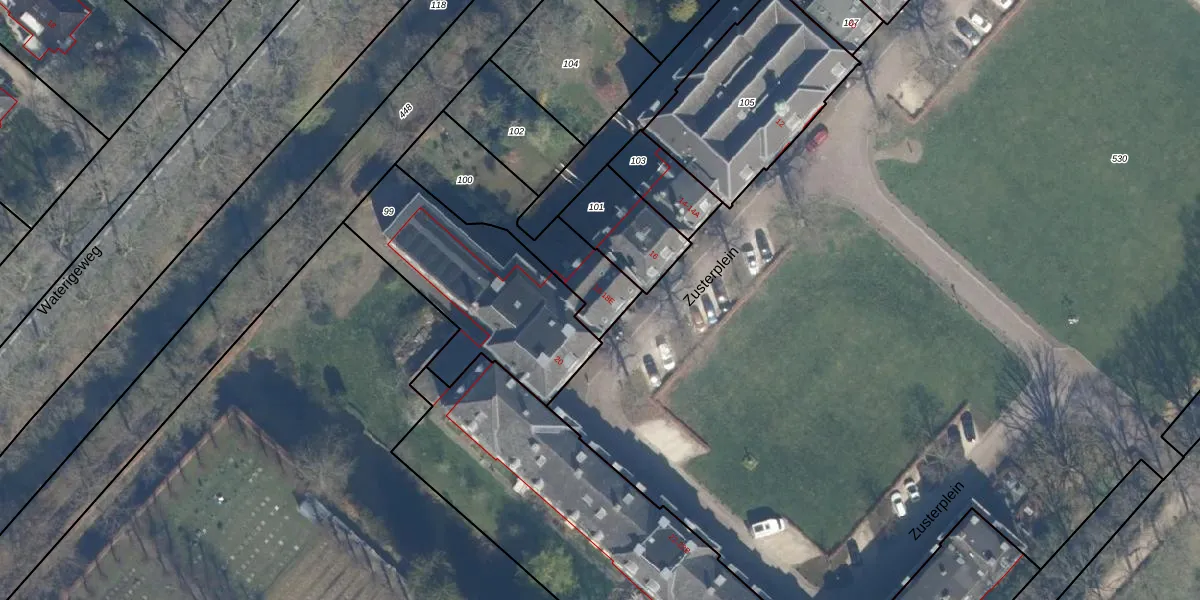 Zusterplein 18-D is gelegen op kadastraal perceel ZEI00L100. Deze kadastrale aanduiding is uniek en wordt gebruikt door het Kadaster om eigendomsrechten en andere zakelijke rechten vast te leggen. Het perceel maakt onderdeel uit van de kadastrale gemeente Zeist.