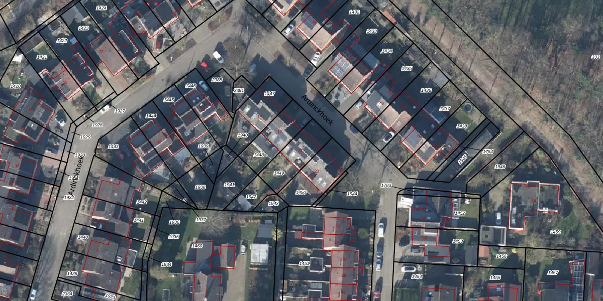 Het perceel waarop Ardinckhoek 21 staat heeft een oppervlakte van 233 m². Dit is een middelgroot perceel. De perceeloppervlakte wordt geregistreerd door het Kadaster. Gedetailleerde informatie over de maten van dit perceel kunt u vinden in het rapport Kadastrale kaart met maatvoering van Ardinckhoek 21.