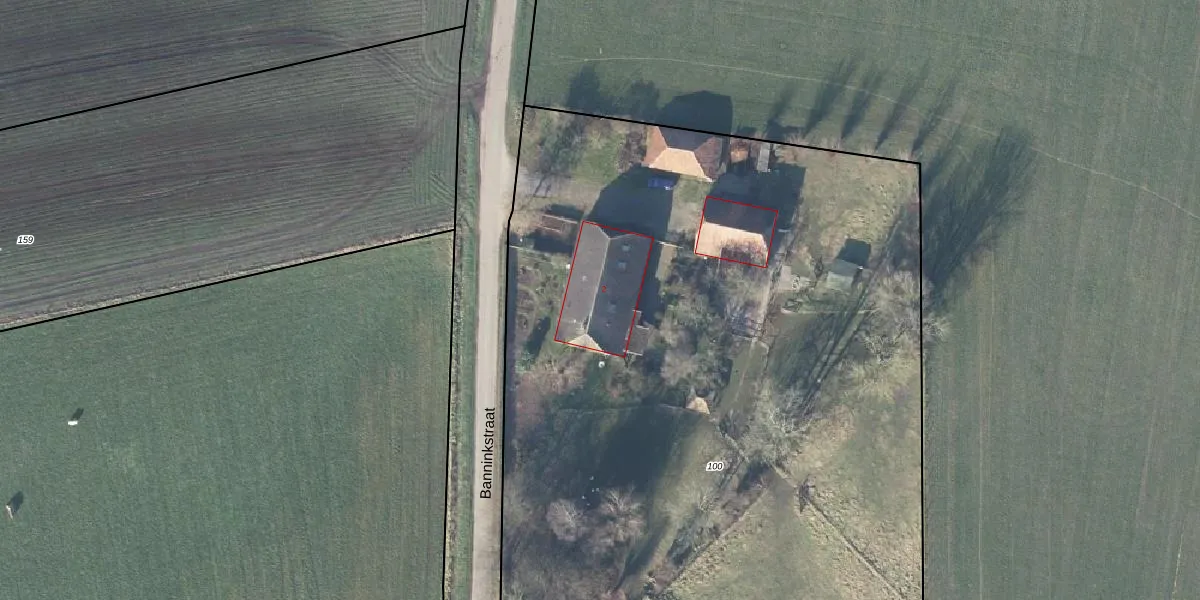 Het perceel waarop Banninkstraat 2 staat heeft een oppervlakte van 7865 m². Dit is een zeer groot perceel. De perceeloppervlakte wordt geregistreerd door het Kadaster. Gedetailleerde informatie over de maten van dit perceel kunt u vinden in het rapport Kadastrale kaart met maatvoering van Banninkstraat 2.
