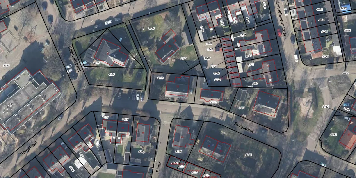 Het perceel waarop Bergstraat 33 staat heeft een oppervlakte van 409 m². Dit is een groot perceel. De perceeloppervlakte wordt geregistreerd door het Kadaster. Gedetailleerde informatie over de maten van dit perceel kunt u vinden in het rapport Kadastrale kaart met maatvoering van Bergstraat 33.