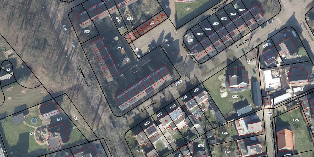 Het perceel waarop Bergstraat 59 staat heeft een oppervlakte van 2871 m². Dit is een zeer groot perceel. De perceeloppervlakte wordt geregistreerd door het Kadaster. Gedetailleerde informatie over de maten van dit perceel kunt u vinden in het rapport Kadastrale kaart met maatvoering van Bergstraat 59.