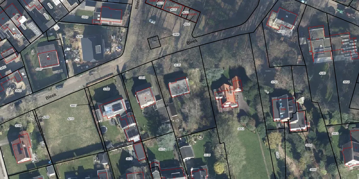 Gebruik de zoekbalk of klik op een perceel voor informatie over de adressen binnen dit perceel.