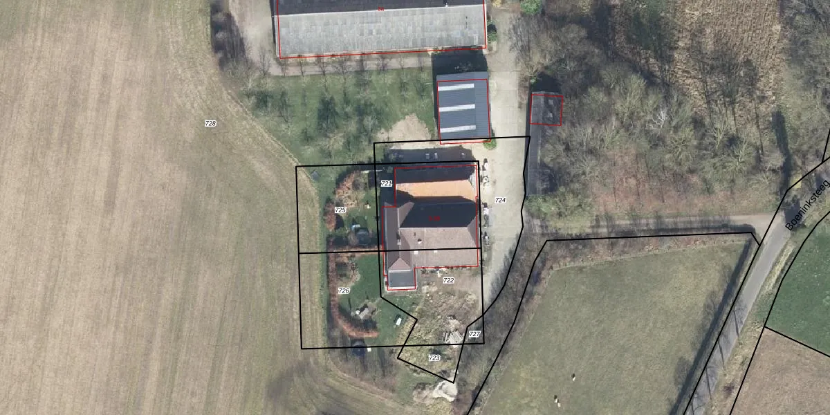 Het perceel waarop Boeninksteeg 3-B staat heeft een oppervlakte van 522 m². Dit is een groot perceel. De perceeloppervlakte wordt geregistreerd door het Kadaster. Gedetailleerde informatie over de maten van dit perceel kunt u vinden in het rapport Kadastrale kaart met maatvoering van Boeninksteeg 3-B.