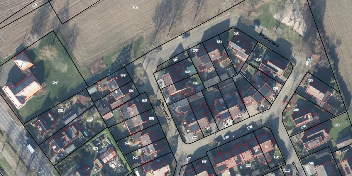 Het perceel waarop Boomgaard 13 staat heeft een oppervlakte van 237 m². Dit is een middelgroot perceel. De perceeloppervlakte wordt geregistreerd door het Kadaster. Gedetailleerde informatie over de maten van dit perceel kunt u vinden in het rapport Kadastrale kaart met maatvoering van Boomgaard 13.