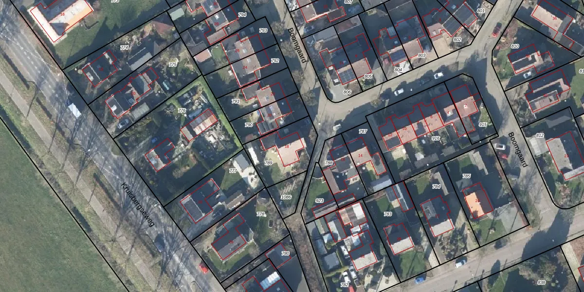 Het perceel waarop Boomgaard 18 staat heeft een oppervlakte van 374 m². Dit is een groot perceel. De perceeloppervlakte wordt geregistreerd door het Kadaster. Gedetailleerde informatie over de maten van dit perceel kunt u vinden in het rapport Kadastrale kaart met maatvoering van Boomgaard 18.
