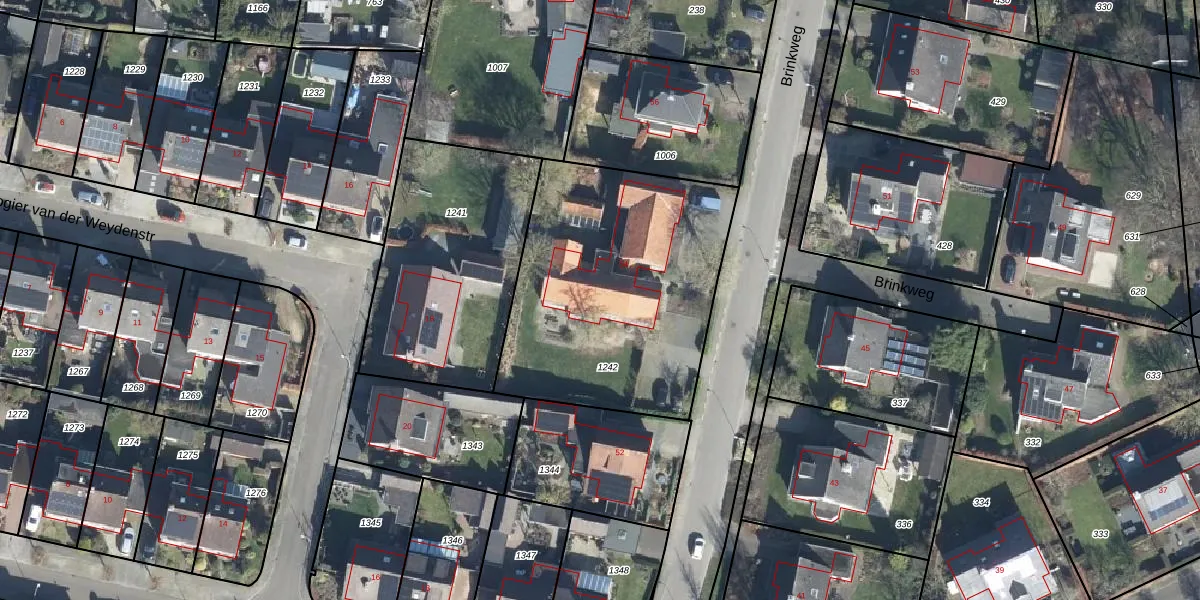 Het perceel waarop Brinkweg 54 staat heeft een oppervlakte van 1326 m². Dit is een zeer groot perceel. De perceeloppervlakte wordt geregistreerd door het Kadaster. Gedetailleerde informatie over de maten van dit perceel kunt u vinden in het rapport Kadastrale kaart met maatvoering van Brinkweg 54.