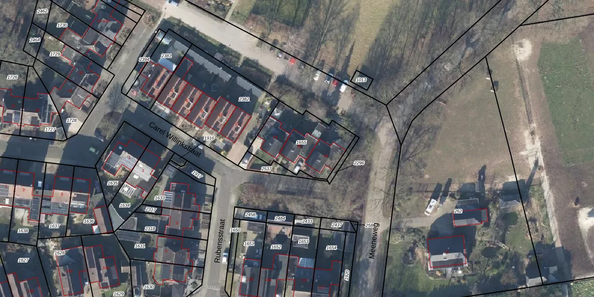 Het perceel waarop Carel Willinkstraat 16 staat heeft een oppervlakte van 556 m². Dit is een groot perceel. De perceeloppervlakte wordt geregistreerd door het Kadaster. Gedetailleerde informatie over de maten van dit perceel kunt u vinden in het rapport Kadastrale kaart met maatvoering van Carel Willinkstraat 16.