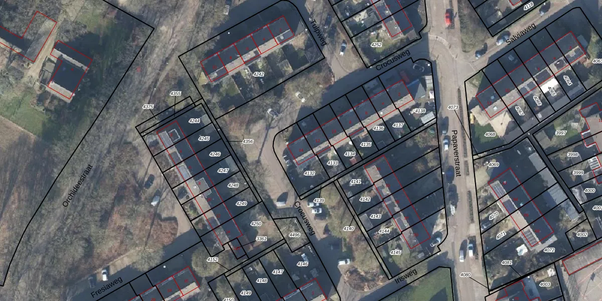 Gebruik de zoekbalk of klik op een perceel voor informatie over de adressen binnen dit perceel.