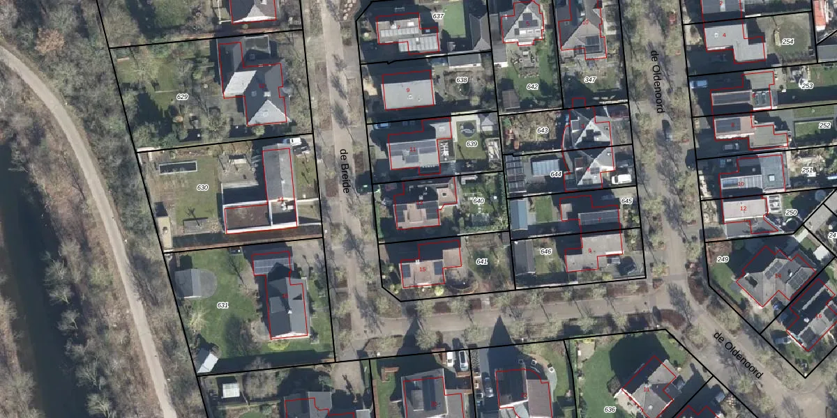 de Breide 13 is gelegen op kadastraal perceel ZHM00P640. Deze kadastrale aanduiding is uniek en wordt gebruikt door het Kadaster om eigendomsrechten en andere zakelijke rechten vast te leggen. Het perceel maakt onderdeel uit van de kadastrale gemeente Zelhem.