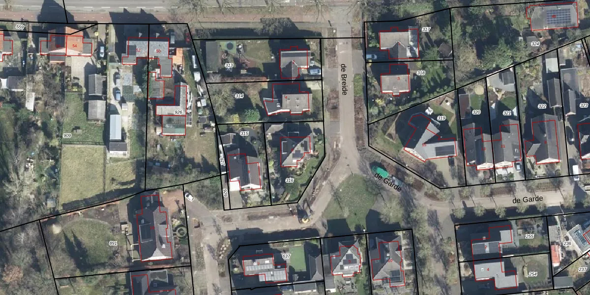 Het perceel waarop de Breide 6 staat heeft een oppervlakte van 465 m². Dit is een groot perceel. De perceeloppervlakte wordt geregistreerd door het Kadaster. Gedetailleerde informatie over de maten van dit perceel kunt u vinden in het rapport Kadastrale kaart met maatvoering van de Breide 6.