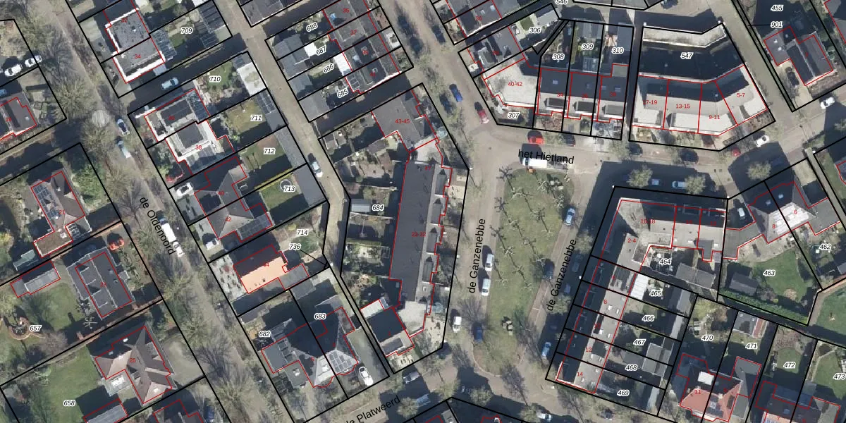 Het perceel waarop de Ganzenebbe 30 staat heeft een oppervlakte van 1524 m². Dit is een zeer groot perceel. De perceeloppervlakte wordt geregistreerd door het Kadaster. Gedetailleerde informatie over de maten van dit perceel kunt u vinden in het rapport Kadastrale kaart met maatvoering van de Ganzenebbe 30.