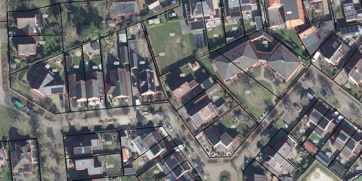 Gebruik de zoekbalk of klik op een perceel voor informatie over de adressen binnen dit perceel.