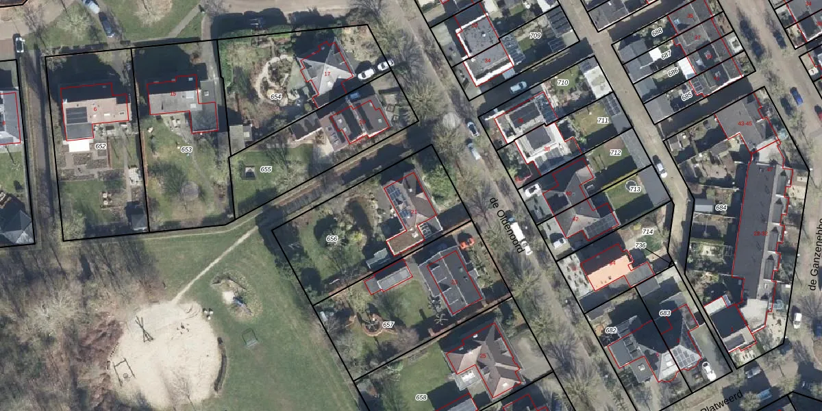 Het perceel waarop de Oldenoord 21 staat heeft een oppervlakte van 919 m². Dit is een groot perceel. De perceeloppervlakte wordt geregistreerd door het Kadaster. Gedetailleerde informatie over de maten van dit perceel kunt u vinden in het rapport Kadastrale kaart met maatvoering van de Oldenoord 21.