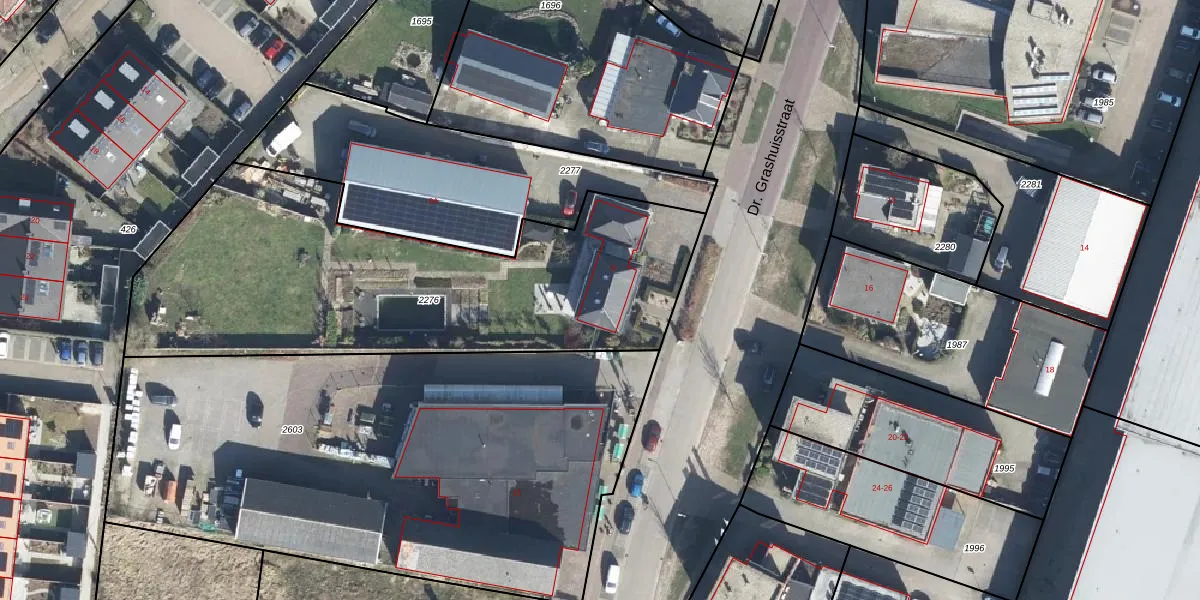 Het perceel waarop Dr. Grashuisstraat 9 staat heeft een oppervlakte van 2133 m². Dit is een zeer groot perceel. De perceeloppervlakte wordt geregistreerd door het Kadaster. Gedetailleerde informatie over de maten van dit perceel kunt u vinden in het rapport Kadastrale kaart met maatvoering van Dr. Grashuisstraat 9.