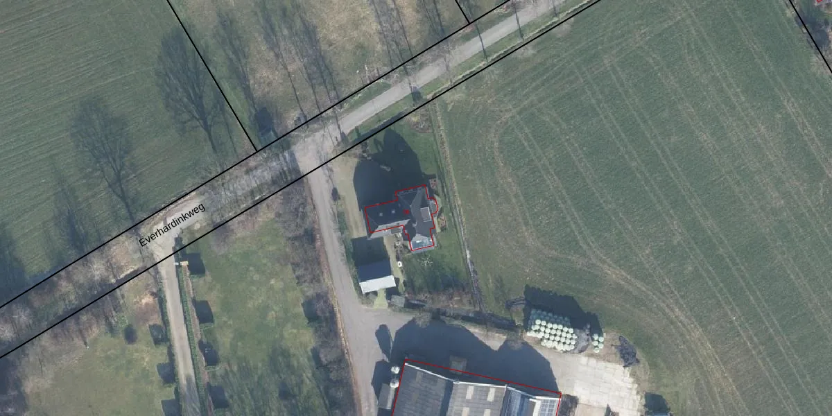 Het perceel waarop Everhardinkweg 3-B staat heeft een oppervlakte van 5,4 ha. Dit is een zeer groot perceel. De perceeloppervlakte wordt geregistreerd door het Kadaster. Gedetailleerde informatie over de maten van dit perceel kunt u vinden in het rapport Kadastrale kaart met maatvoering van Everhardinkweg 3-B.