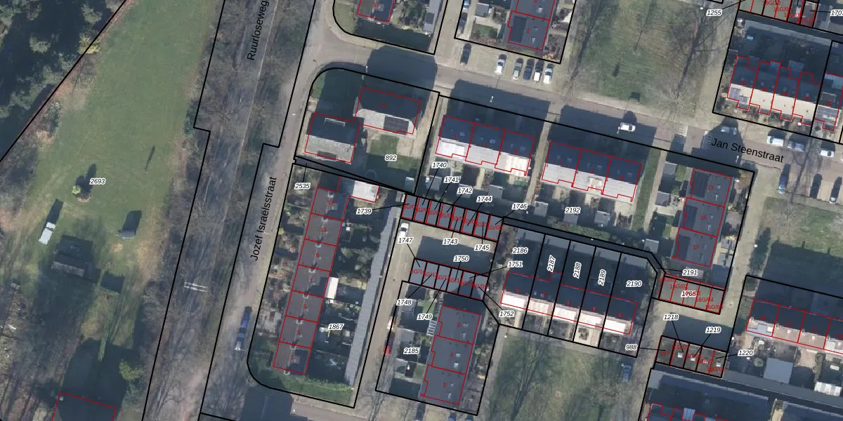 Gebruik de zoekbalk of klik op een perceel voor informatie over de adressen binnen dit perceel.