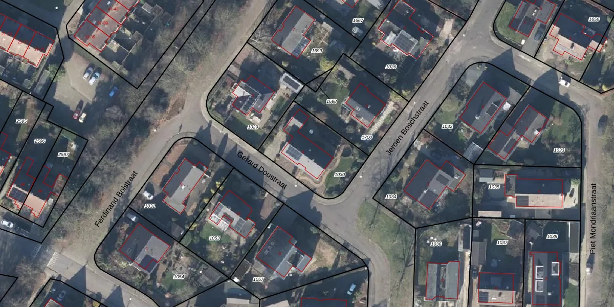 Gebruik de zoekbalk of klik op een perceel voor informatie over de adressen binnen dit perceel.