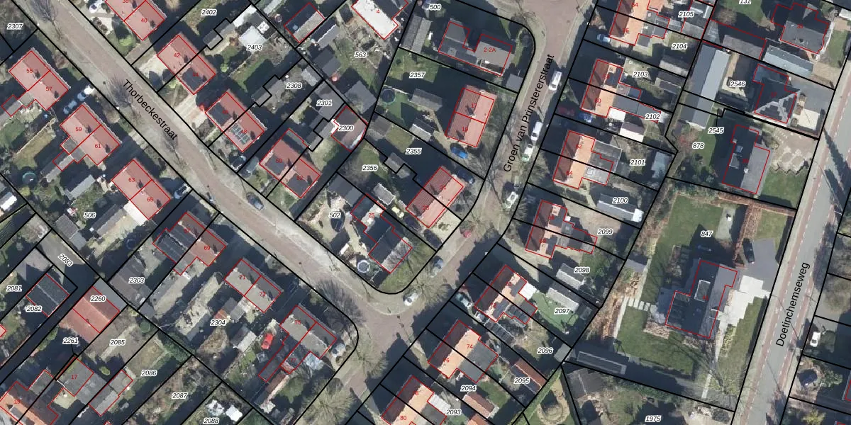 Gebruik de zoekbalk of klik op een perceel voor informatie over de adressen binnen dit perceel.