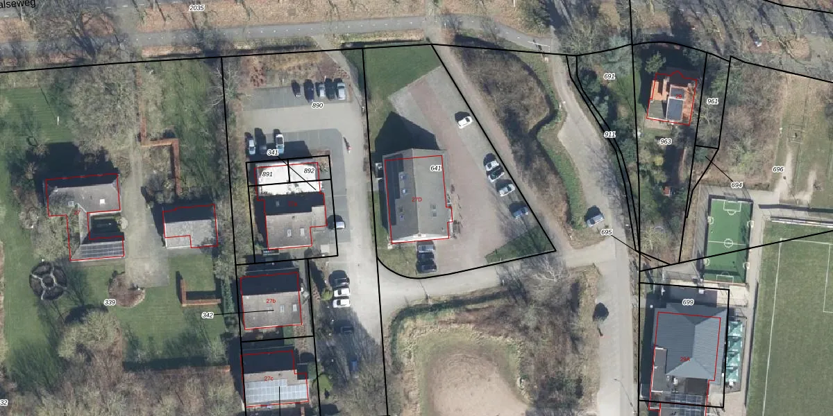 Het perceel waarop Halseweg 27-D staat heeft een oppervlakte van 1640 m². Dit is een zeer groot perceel. De perceeloppervlakte wordt geregistreerd door het Kadaster. Gedetailleerde informatie over de maten van dit perceel kunt u vinden in het rapport Kadastrale kaart met maatvoering van Halseweg 27-D.