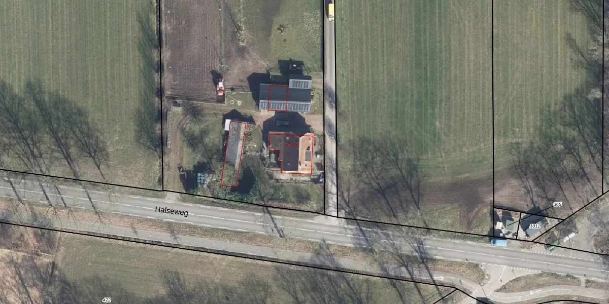 Het perceel waarop Halseweg 40-A staat heeft een oppervlakte van 1,0 ha. Dit is een zeer groot perceel. De perceeloppervlakte wordt geregistreerd door het Kadaster. Gedetailleerde informatie over de maten van dit perceel kunt u vinden in het rapport Kadastrale kaart met maatvoering van Halseweg 40-A.
