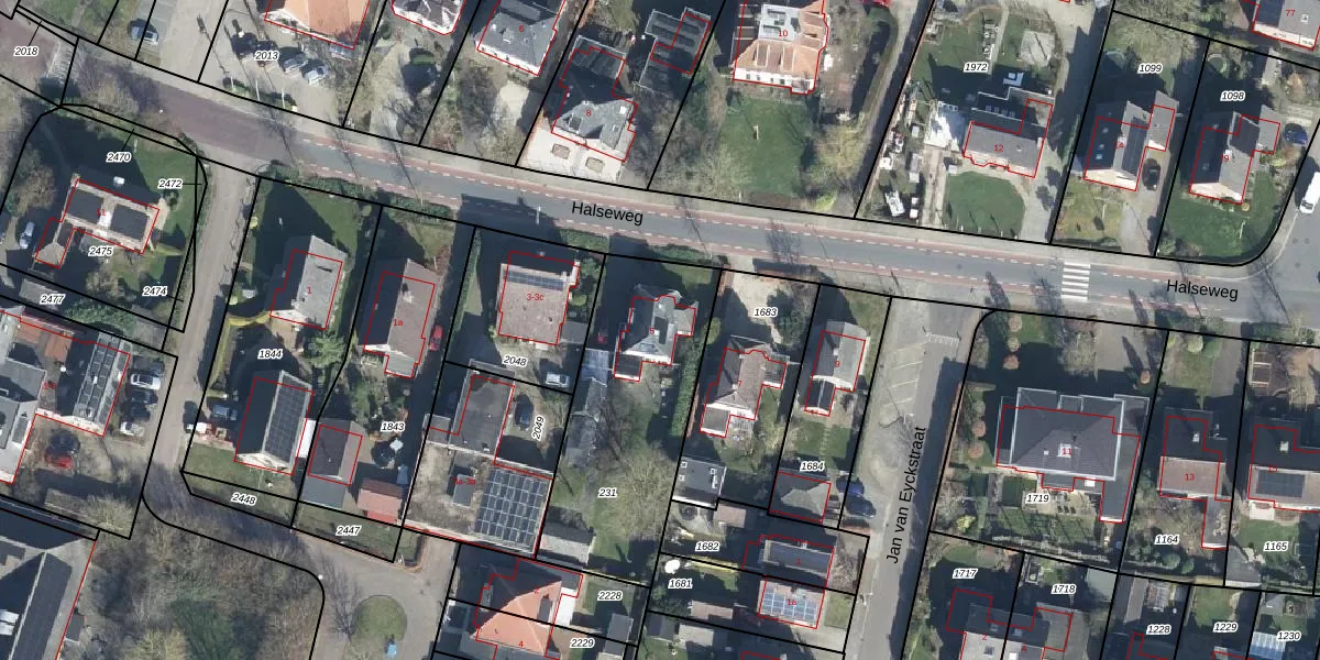 Gebruik de zoekbalk of klik op een perceel voor informatie over de adressen binnen dit perceel.
