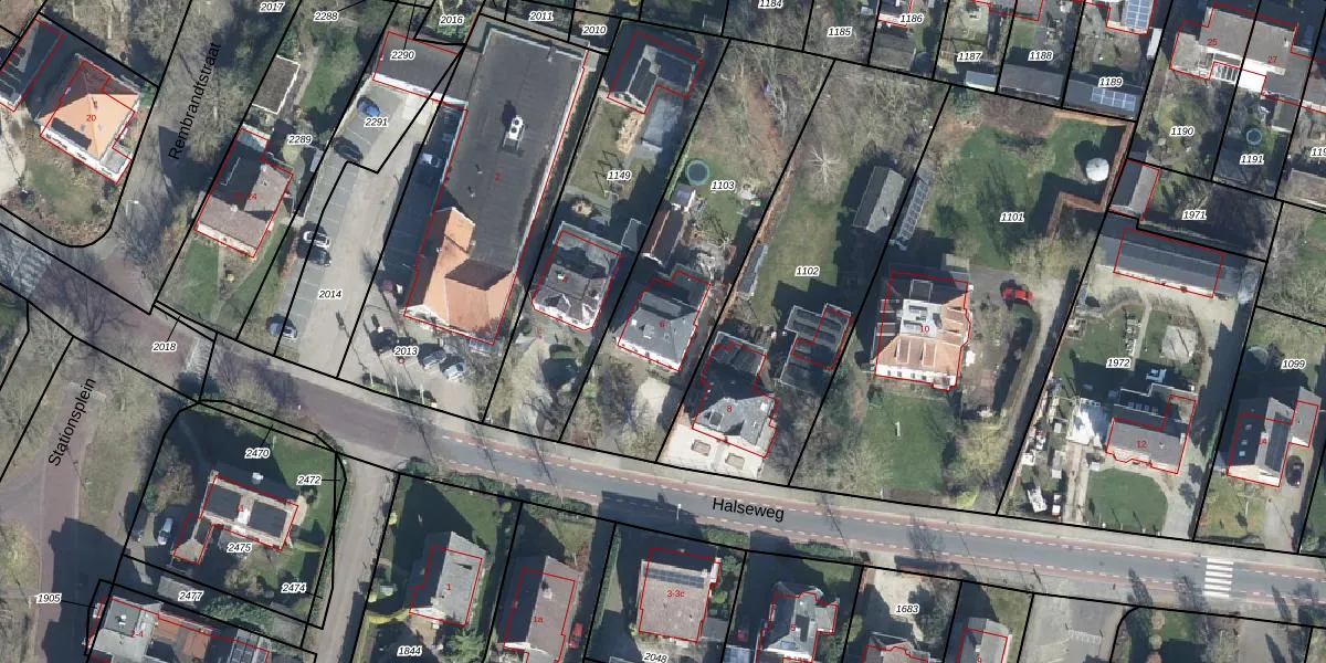 Gebruik de zoekbalk of klik op een perceel voor informatie over de adressen binnen dit perceel.