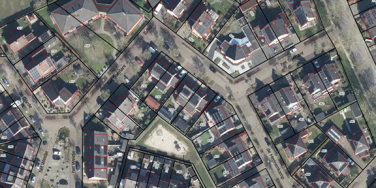Gebruik de zoekbalk of klik op een perceel voor informatie over de adressen binnen dit perceel.