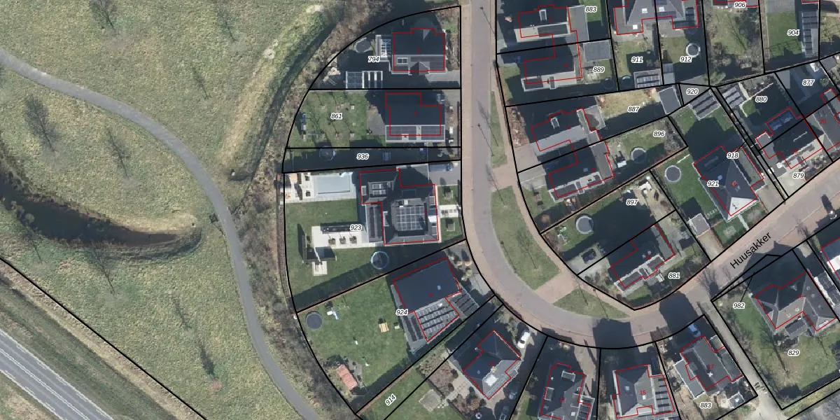 Het perceel waarop Huusakker 5 staat heeft een oppervlakte van 1120 m². Dit is een zeer groot perceel. De perceeloppervlakte wordt geregistreerd door het Kadaster. Gedetailleerde informatie over de maten van dit perceel kunt u vinden in het rapport Kadastrale kaart met maatvoering van Huusakker 5.