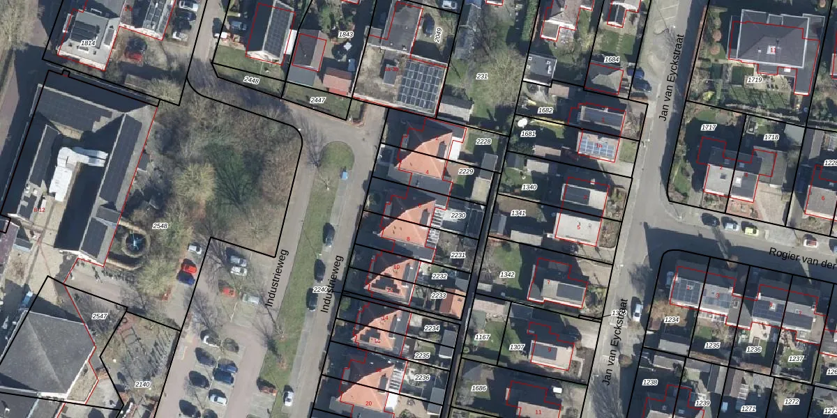 Gebruik de zoekbalk of klik op een perceel voor informatie over de adressen binnen dit perceel.