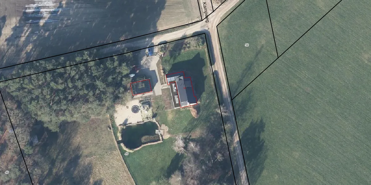 Kampweg 10 is gelegen op kadastraal perceel ZHM00U49. Deze kadastrale aanduiding is uniek en wordt gebruikt door het Kadaster om eigendomsrechten en andere zakelijke rechten vast te leggen. Het perceel maakt onderdeel uit van de kadastrale gemeente Zelhem.