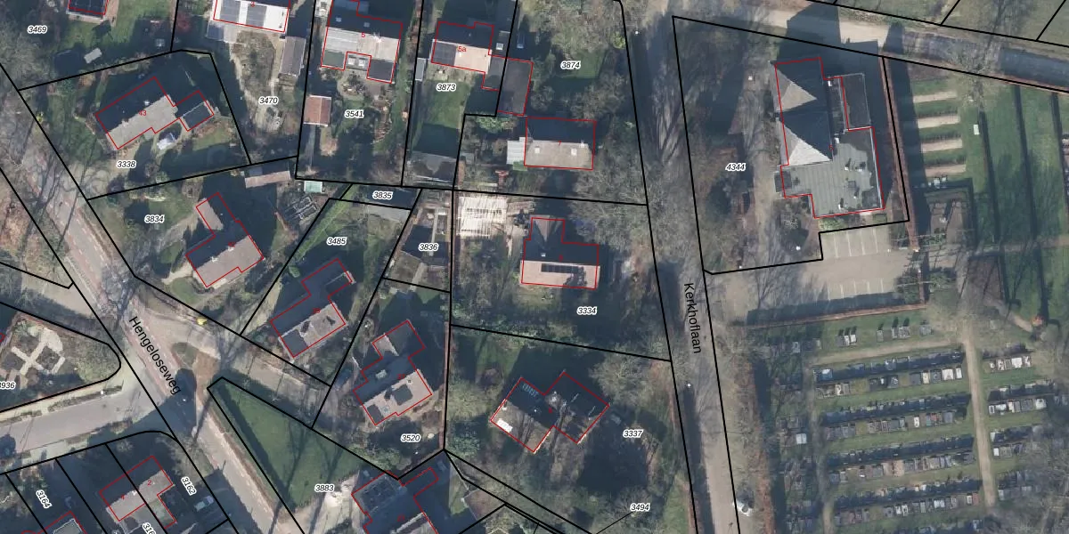 Gebruik de zoekbalk of klik op een perceel voor informatie over de adressen binnen dit perceel.