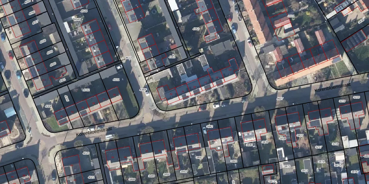 Het perceel waarop Korenbloemstraat 21 staat heeft een oppervlakte van 4360 m². Dit is een zeer groot perceel. De perceeloppervlakte wordt geregistreerd door het Kadaster. Gedetailleerde informatie over de maten van dit perceel kunt u vinden in het rapport Kadastrale kaart met maatvoering van Korenbloemstraat 21.