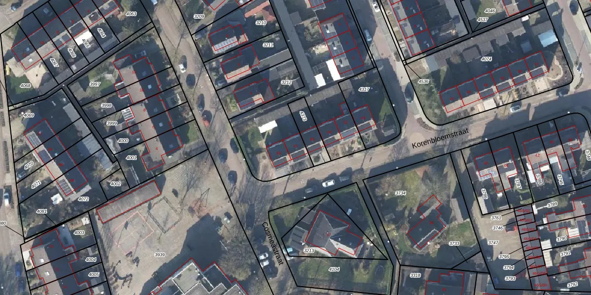 Het perceel waarop Korenbloemstraat 57 staat heeft een oppervlakte van 2351 m². Dit is een zeer groot perceel. De perceeloppervlakte wordt geregistreerd door het Kadaster. Gedetailleerde informatie over de maten van dit perceel kunt u vinden in het rapport Kadastrale kaart met maatvoering van Korenbloemstraat 57.