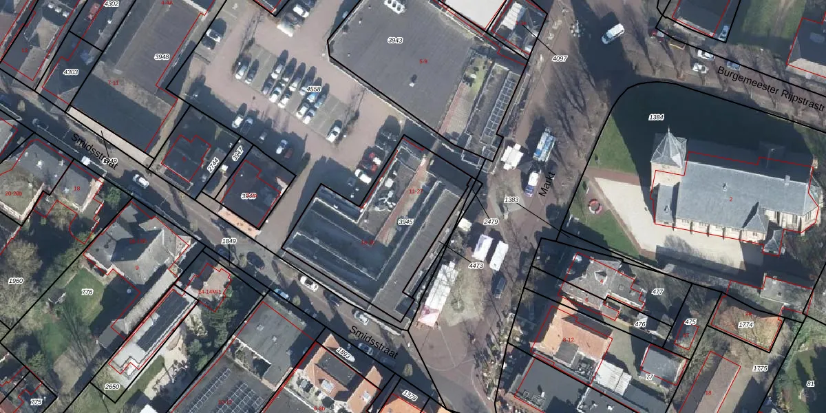Het perceel waarop Markt 11 staat heeft een oppervlakte van 972 m². Dit is een groot perceel. De perceeloppervlakte wordt geregistreerd door het Kadaster. Gedetailleerde informatie over de maten van dit perceel kunt u vinden in het rapport Kadastrale kaart met maatvoering van Markt 11.