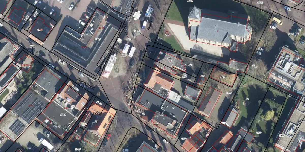 Het perceel waarop Markt 8 staat heeft een oppervlakte van 664 m². Dit is een groot perceel. De perceeloppervlakte wordt geregistreerd door het Kadaster. Gedetailleerde informatie over de maten van dit perceel kunt u vinden in het rapport Kadastrale kaart met maatvoering van Markt 8.