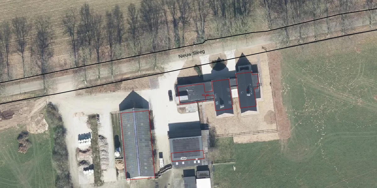 Het perceel waarop Nieuw Steeg 4-B staat heeft een oppervlakte van 4,1 ha. Dit is een zeer groot perceel. De perceeloppervlakte wordt geregistreerd door het Kadaster. Gedetailleerde informatie over de maten van dit perceel kunt u vinden in het rapport Kadastrale kaart met maatvoering van Nieuw Steeg 4-B.