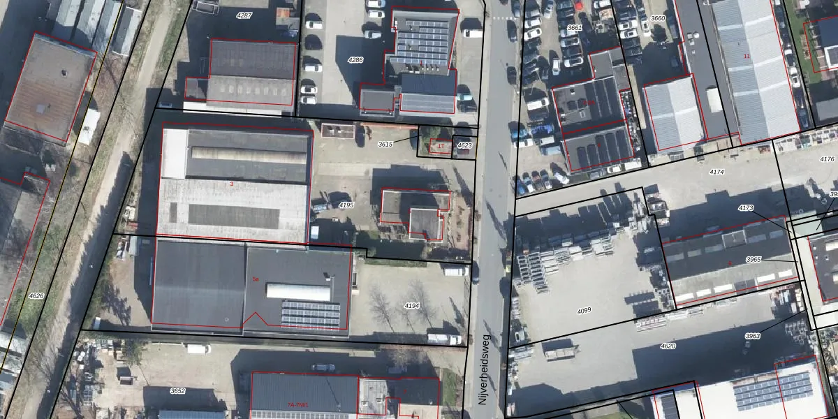 Het perceel waarop Nijverheidsweg 5 staat heeft een oppervlakte van 2380 m². Dit is een zeer groot perceel. De perceeloppervlakte wordt geregistreerd door het Kadaster. Gedetailleerde informatie over de maten van dit perceel kunt u vinden in het rapport Kadastrale kaart met maatvoering van Nijverheidsweg 5.